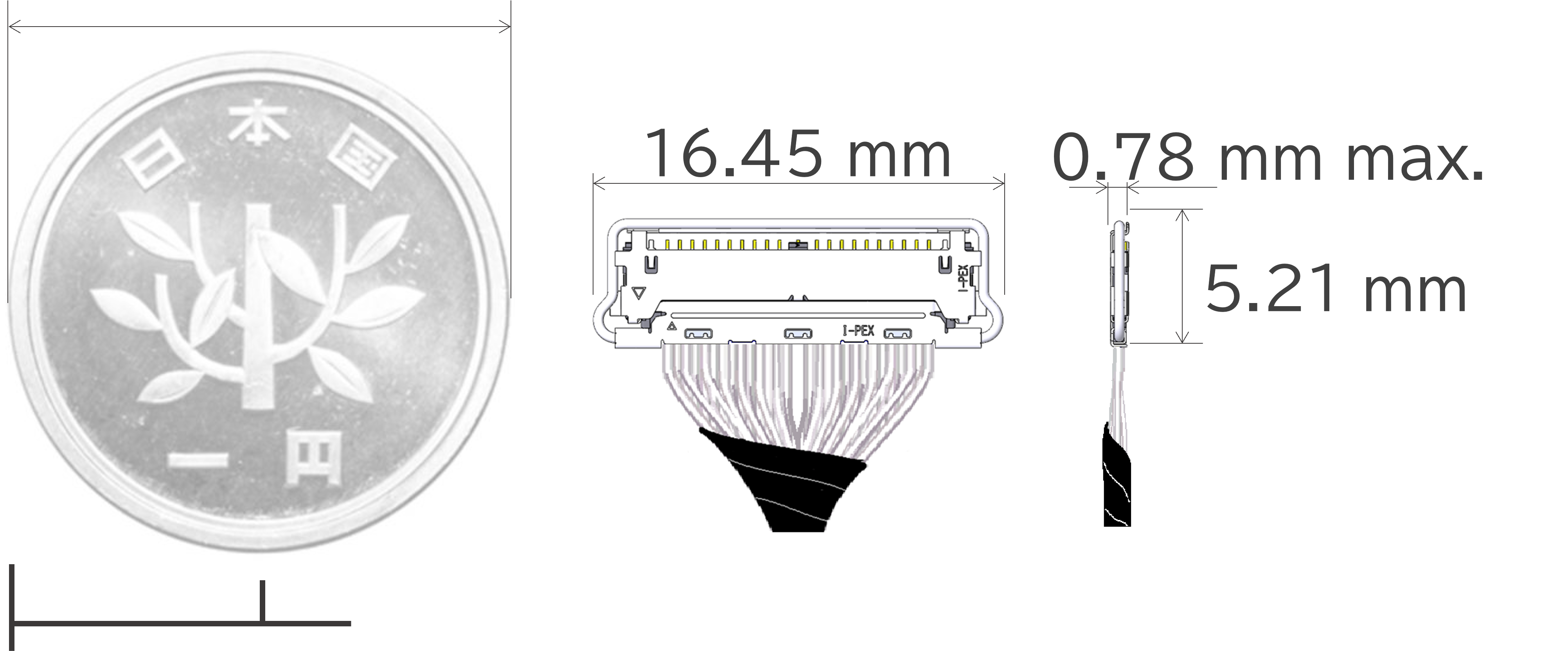 CABLINE-CX II 40p と 1円硬貨のサイズ比較