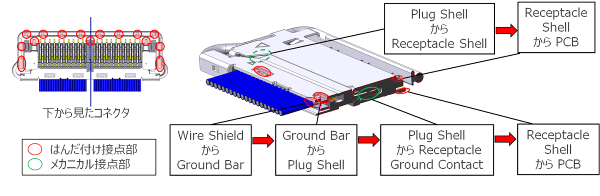 嵌合高さ: 0.78mm max. 細線同軸コネクタハーネスによるヒンジ部通過シミュレーション