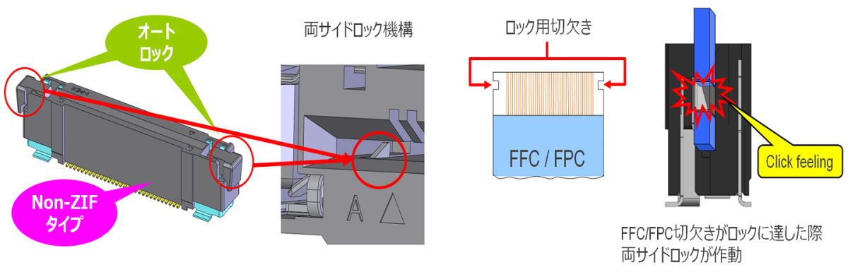 オートロック、垂直嵌合、0.5 mmピッチ、FFC/FPCコネクタ