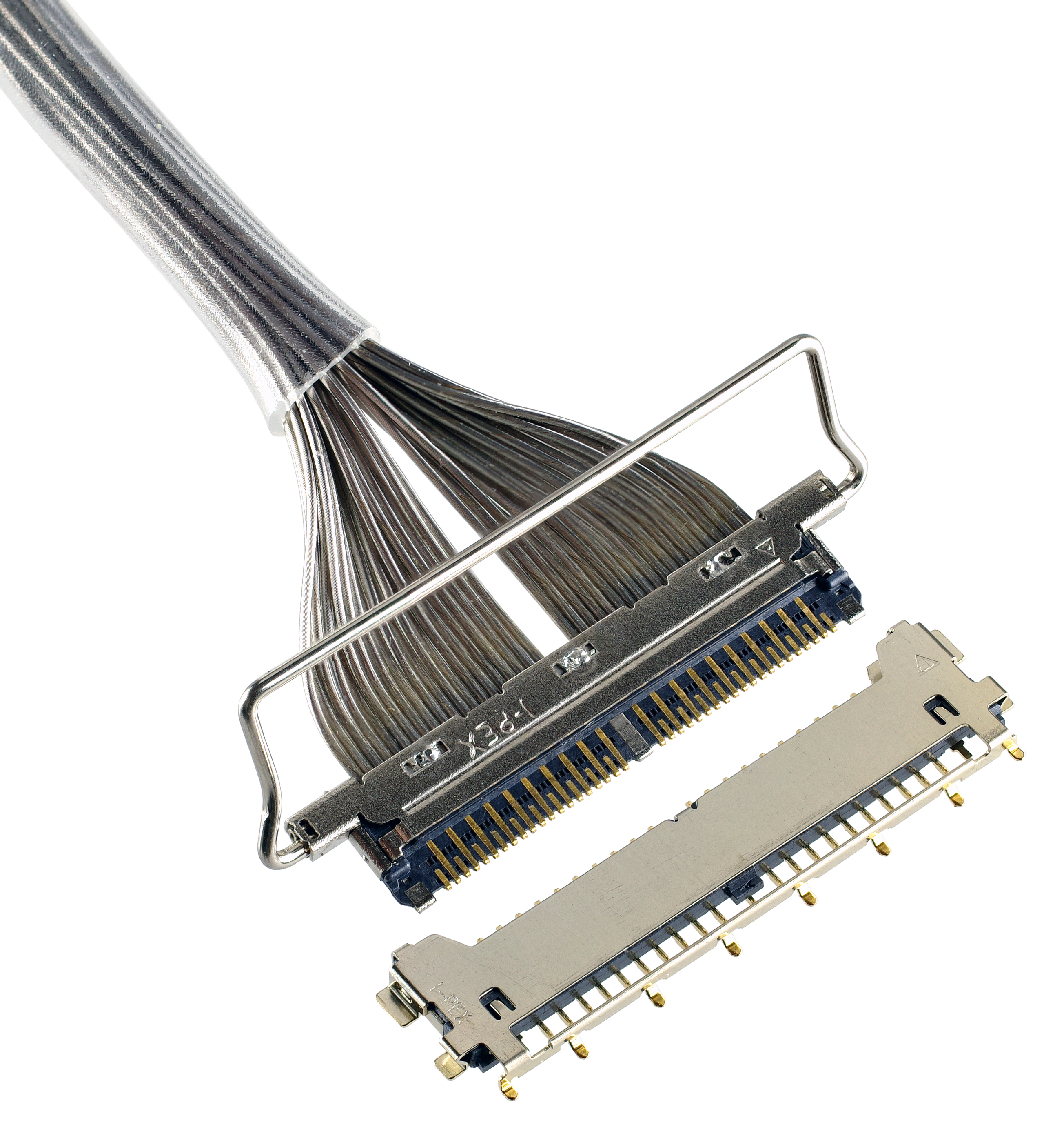 電源、低速制御、高速データ信号をすべて同じハーネスで伝送する必要がある場合があります。表面実装部品が近接していたり、システム内にノイズが存在するため、信号をEMIやクロストークから保護する必要があります。I-PEXはZenShield®と呼ばれる360度完全なEMIシールドソリューションをFPCケーブルと、CABLINE®シリーズ製品の細線同軸ケーブルとTwinaxialケーブルのプラグの双方に提供しており、信号コンタクトと嵌合コネクタのはんだ付け側の両方をEMIノイズからカバーしています。