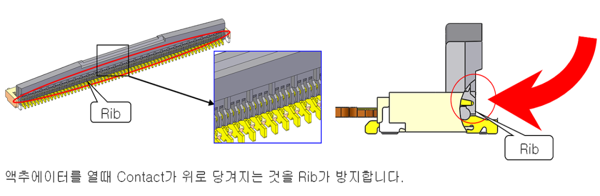 0.2mm 피치, 수평 결합, 백플립,(높이= 0.9 mm)