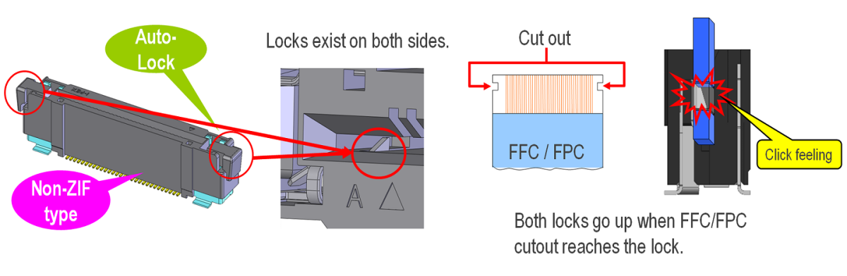 Auto-locking, vertical mate, 0.5 mm pitch FFC/FPC connector