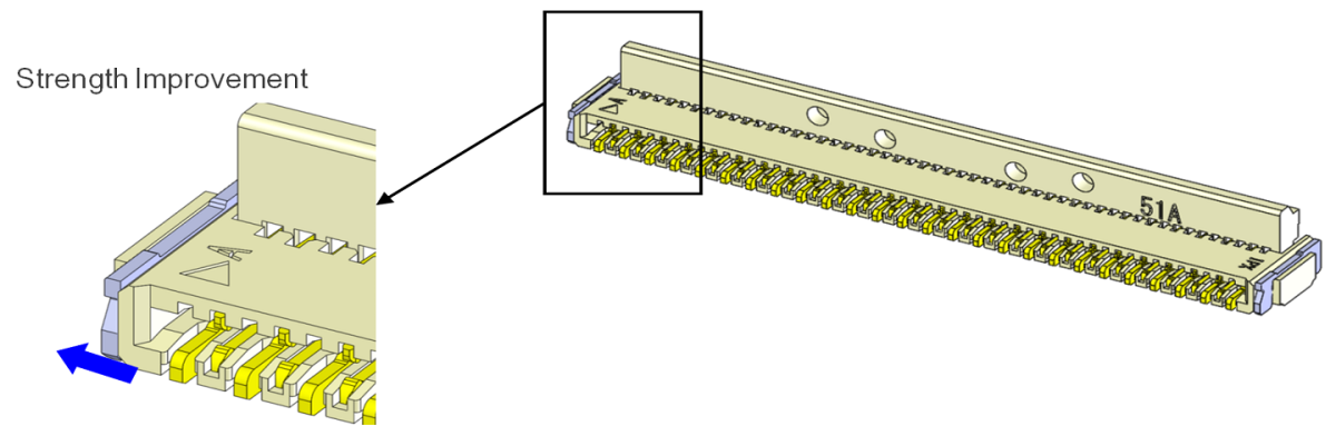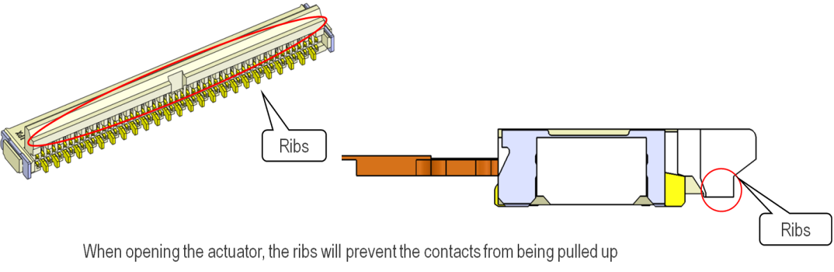 Robust design with hold-down feature, long actuator, low profile (Height = 0.9 mm), 0.3 mm pitch, horizontal, backflip