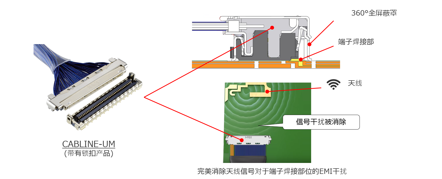 连接器自带360°的屏蔽罩机构,能够全方位防止EMI干扰,在有限的空间内完美地实现EMI泄露问题。(如图2)