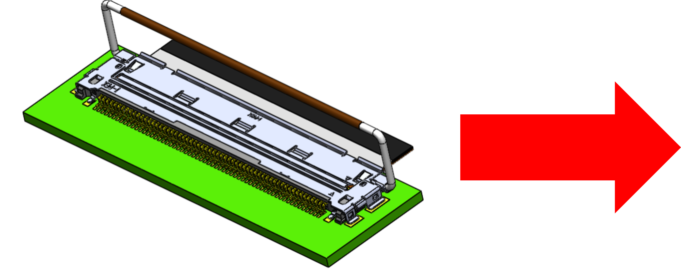 带屏蔽功能的机械锁扣和多点接地设计,适用于高速数据传输 (32 Gbps/lane), 0.4 mm 间距, 水平对插款的FPC 型公头连接器